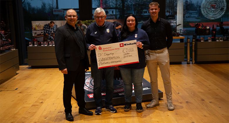 ❱❱ Im Bild seht ihr Hans-Peter Rostan, Director Group Human Resources der Einhell Germany AG, bei der Spendenübergabe an die DJK Jägerwirth.