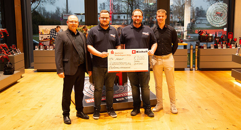 Alle Gewinner-Vereine laden wir zu einem exklusiven Event im Einhell Headquarter ein! Dort haben 10 Vereine nochmal die Chance, ihren Gewinn bei einer Live-Auslosung zu verdoppeln – auf satte 2.000 €! Also: Holt euer Team zusammen und zeigt, was euch ausmacht – werdet Teil von #TeamEinhell!