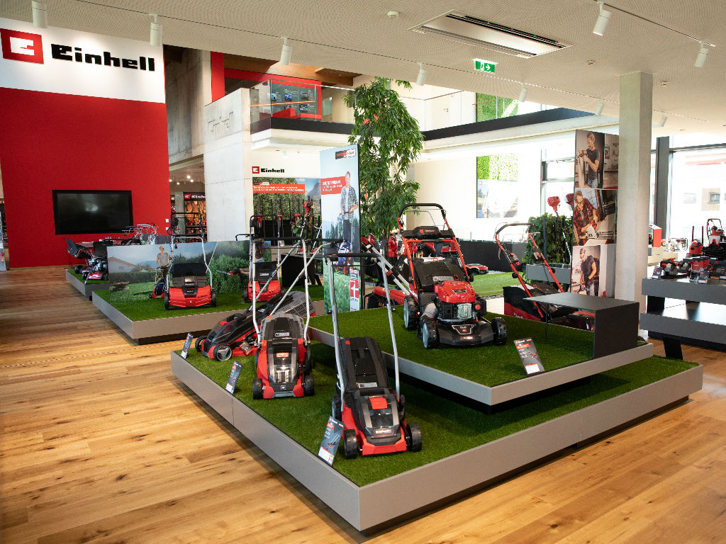 The new showroom allows guests to see the wide and varied Einhell range up close. Visitors will be able to see product innovations for themselves in extended practical tests in the demonstration workshops, training rooms and the new outdoor test site. The bright and open office and meeting rooms will give the ever-increasing number of employees space for flexible and cross-functional working.